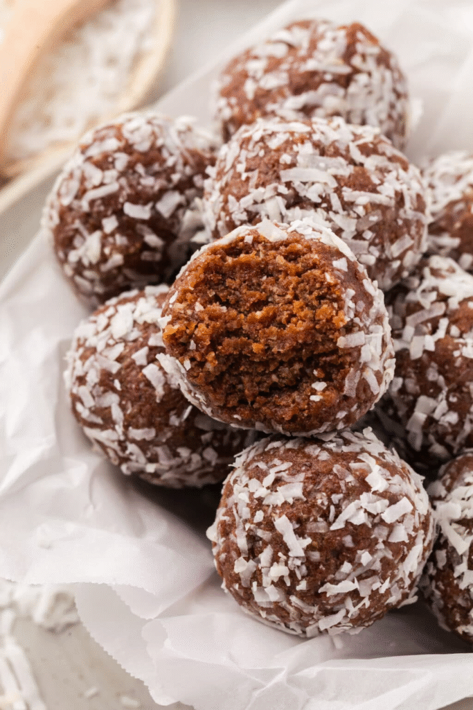 - Step 5: Roll each ball in the extra shredded coconut until coated. This sugar-free snack looks so pretty with that coconut coating.