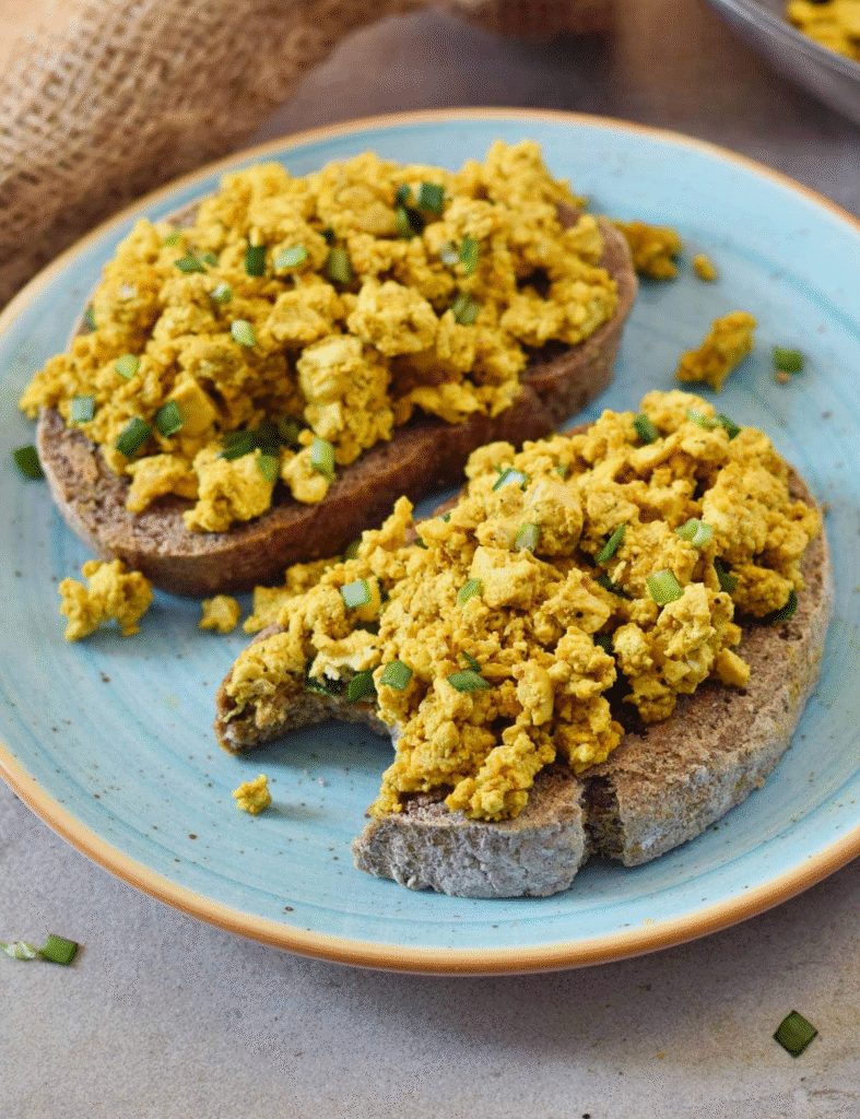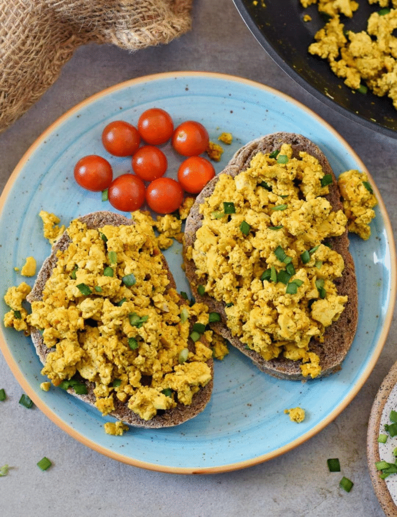 With sides: Go classic—toast, vegan bacon or sausage, roasted tomatoes, and fresh fruit. This combo makes the best vegan egg substitute breakfast for people who miss eggs.